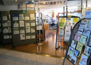 | The plaza entrance is a space for volunteer information. Recruitment of volunteers from groups and facilities is posted for each of the six wards. Near the enterance, two computers for search are installed. You can use Chiba City's comprehensive volunteer information site "Chibabora" to search for volunteers who have the desired date and time, location, and job description. |
