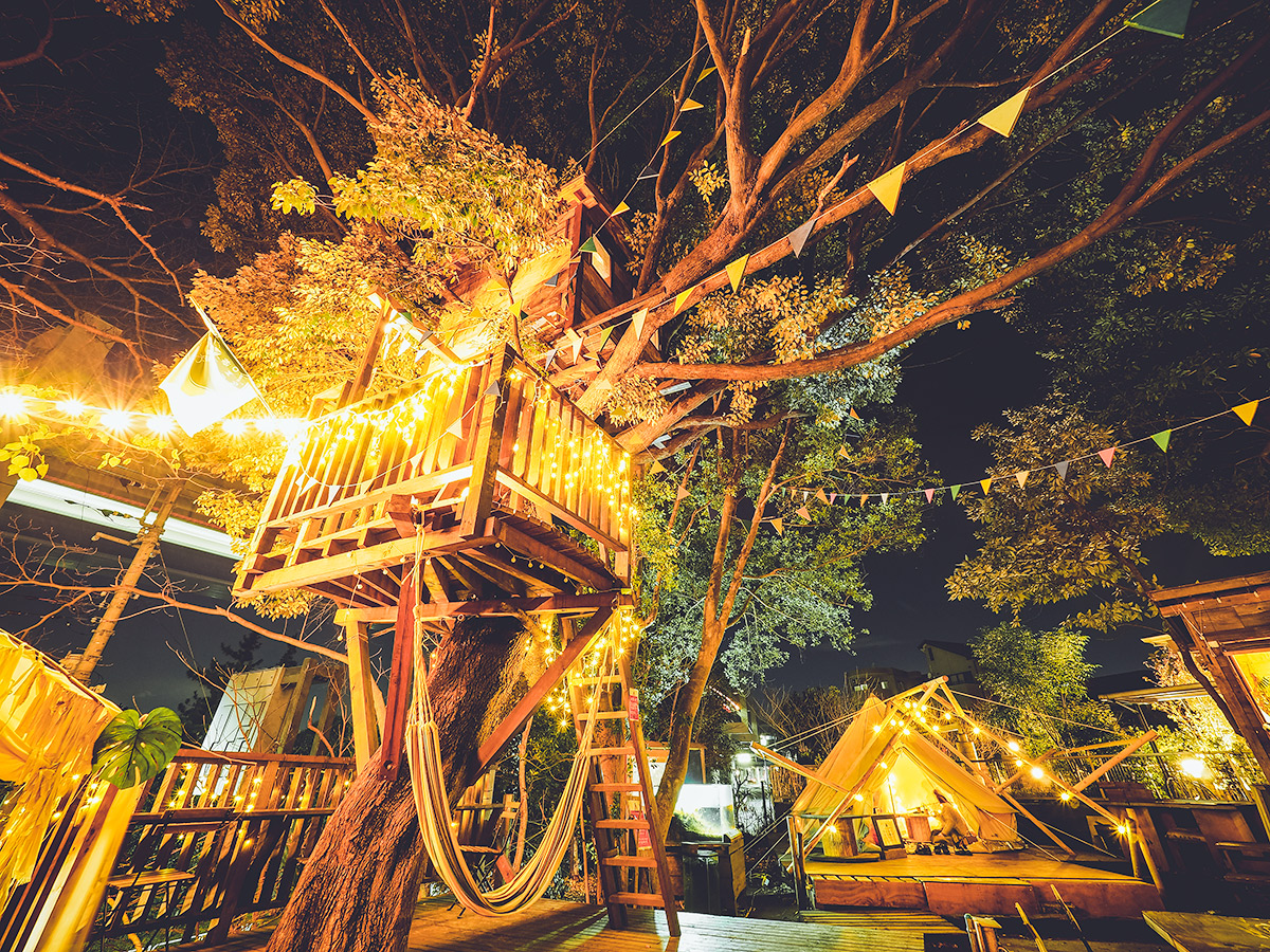 In that small forest, we gathered a tree house, a tiny house (hut), and an air stream (food truck), and opened a community space.